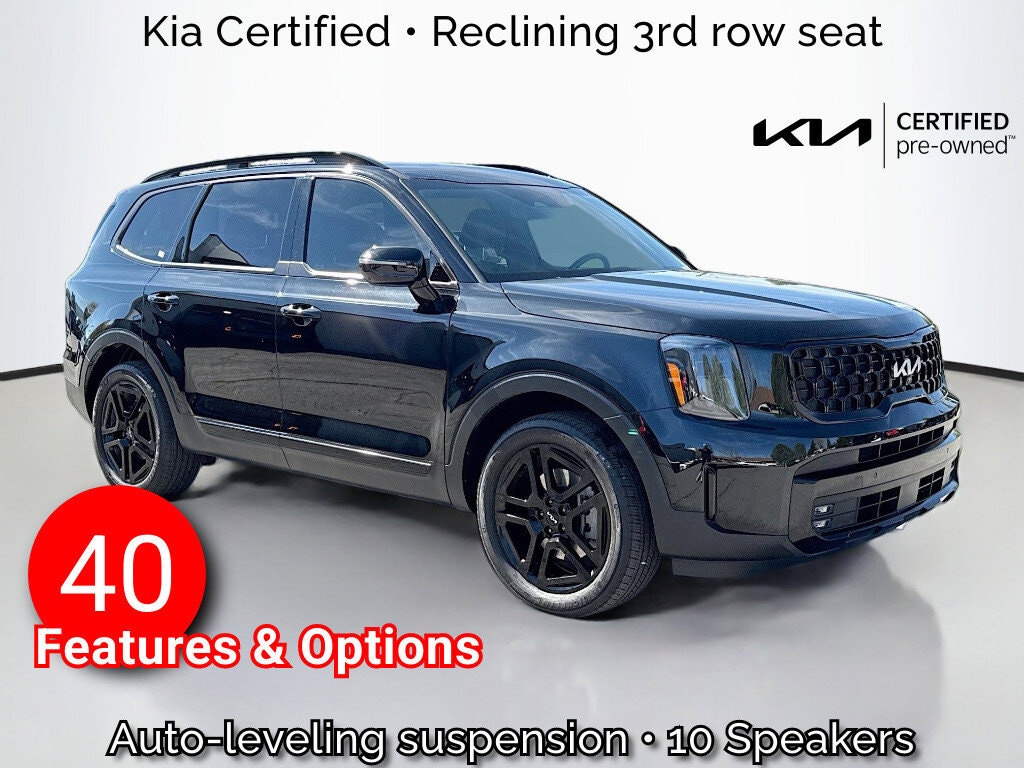 164-Point Kia Certified Inspection, Multi-Point Inspection, w/ Oil Change, Smog Completed, & Full Vehicle Detail Inside & Out, Cabin Air Filter is New, Engine Air Filter is New, 10 Speakers, 3.648 Axle Ratio, 3rd row seats: split-bench, 4-Wheel Disc Brakes, ABS brakes, Air Conditioning, Alloy wheels, AM/FM radio: SiriusXM, Apple CarPlay & Android Auto, Auto High-beam Headlights, Auto-dimming Rear-View mirror, Auto-leveling suspension, Automatic temperature control, Brake assist, Bumpers: body-color, Cargo Cover, Carpet Floor Mats, Compass, Delay-off headlights, Driver door bin, Driver vanity mirror, Dual front impact airbags, Dual front side impact airbags, Electronic Stability Control, Emergency communication system: 911 Connect, Exterior Parking Camera Rear, Four wheel independent suspension, Front anti-roll bar, Front Bucket Seats, Front Center Armrest, Front dual zone A/C, Front fog lights, Front reading lights, Fully automatic headlights, Garage door transmitter: HomeLink, harman/kardon® Speakers, Heads-Up Display, Heated & Ventilated Front Bucket Seats, Heated door mirrors, Heated front seats, Heated rear seats, Heated steering wheel, Illuminated entry, Knee airbag, Leather Shift Knob, Leather steering wheel, Low tire pressure warning, Memory seat, Navigation System, Occupant sensing airbag, Outside temperature display, Overhead airbag, Overhead console, Panic alarm, Passenger door bin, Passenger vanity mirror, Power door mirrors, Power driver seat, Power Liftgate, Power moonroof, Power passenger seat, Power steering, Power windows, Premium Nappa Leather Seat Trim, Radio data system, Radio: AM/FM Harman Kardon Audio System, Rain sensing wipers, Rear air conditioning, Rear anti-roll bar, Rear audio controls, Rear reading lights, Rear side impact airbag, Rear window defroster, Rear window wiper, Reclining 3rd row seat, Remote keyless entry, Roof rack: rails only, Security system, Smart Key w/ Push Button and Remote Start, Speed control, Speed-sensing steering, Split folding rear seat, Spoiler, Steering wheel mounted audio controls, Tachometer, Telescoping steering wheel, Tilt steering wheel, Traction control, Trip computer, Turn signal indicator mirrors, Variably intermittent wipers, Ventilated front seats, Ventilated rear seats, Wheels: 20" x 7.5" Black Finish X-LINE Exclusive, Wiper Blades are New all around.