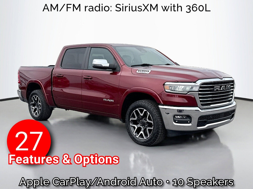 Multi-Point Inspection, w/ Oil Change, Smog Completed, & Full Vehicle Detail Insided & Out, Wiper Blades are New all around, Cabin Air Filter is New, Engine Air Filter is New, 10 Speakers, 3 Rear Seat Head Restraints, 3.55 Rear Axle Ratio, 4 Way Front Headrests, 4-Wheel Disc Brakes, 4G LTE Wi-Fi Hot Spot, ABS brakes, Air Conditioning, Alloy wheels, AM/FM radio: SiriusXM with 360L, Apple CarPlay, Apple CarPlay/Android Auto, Audio memory, Auto High-beam Headlights, Auto Power-Folding Mirrors, Auto-dimming door mirrors, Auto-Dimming Exterior Driver Mirror, Auto-dimming Rear-View mirror, Automatic temperature control, Brake assist, Bumpers: chrome, Chrome Exterior Mirrors, Compass, Connected Travel & Traffic Services, Connectivity - US/Canada, Convex Wide-Angle Exterior Mirror Insert, Delay-off headlights, Driver door bin, Driver Seat Memory, Driver vanity mirror, Dual front impact airbags, Dual front side impact airbags, Electronic Stability Control, Exterior Mirrors Courtesy Lamps, Exterior Mirrors w/Heating Element, Exterior Mirrors w/Memory, Exterior Mirrors w/Supplemental Signals, Front anti-roll bar, Front Center Armrest w/Storage, Front dual zone A/C, Front fog lights, Front License Plate Bracket, Front reading lights, Front Seat Back Map Pockets, Front wheel independent suspension, Fully automatic headlights, Garage door transmitter, Google Android Auto, GPS Antenna Input, GPS Navigation, HD Radio, Heated door mirrors, Heated Front Seats, Heated front seats, Heated rear seats, Heated Steering Wheel, Heated steering wheel, Illuminated entry, Integrated Voice Command w/Bluetooth, Laramie Level 1 Equipment Group, Leather steering wheel, Leather Trim 40/20/40 Bench Seat, Low tire pressure warning, Manufacturer's Statement of Origin, Memory seat, Navigation System, Occupant sensing airbag, Outside temperature display, Overhead airbag, Overhead console, Panic alarm, ParkView Rear Back-Up Camera, Passenger door bin, Passenger vanity mirror, Power 2-Way Driver Lumbar Adjust, Power 2-Way Passenger Lumbar Adjust, Power Adjust 8-Way Front Passenger Seat, Power door mirrors, Power driver seat, Power passenger seat, Power steering, Power windows, Quick Order Package 21H Laramie, Radio data system, Radio: Uconnect 5 Nav w/12.0" Display, Rain Sensitive Windshield Wipers, RAM Grille Badge - Chrome, Rear anti-roll bar, Rear reading lights, Rear seat center armrest, Rear step bumper, Remote keyless entry, Remote Tailgate Release, Security system, SiriusXM w/360L, Speed control, Split folding rear seat, Steering wheel mounted audio controls, Tachometer, Telescoping steering wheel, Tilt steering wheel, Traction control, Trip computer, Turn signal indicator mirrors, USB Host Flip, Variably intermittent wipers, Ventilated Front Seats, Ventilated front seats, Voltmeter, Wheels: 20" x 9" Premium Paint/Polish.